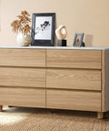 6 Chest of Drawers Dresser Faux Marble Top Natural