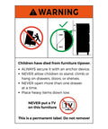 WARNING: Children have died from furniture tipping over. Always secure furniture to prevent serious injury or death. Never allow children to climb or stand on furniture.