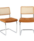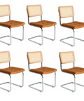 6x Rattan Dining Chair Cesca Replica PU Leather Brown