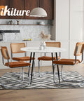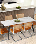 Enhance your dining space with this set of 6 rattan dining chairs. Featuring a sturdy steel frame and woven PE rattan backrest, they offer durability and style. The plush brown PU leather seats provide comfort and are easy to clean. Their modern design and neutral tones make them a perfect match for various dining tables, combining elegance and practicality for everyday use.
