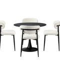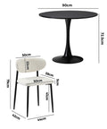 90cm Round Dining Table with 4x Dining Chairs Boucle Black&White