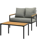 Enjoy outdoor relaxation with the Livsip 2-piece Outdoor Furniture Set. Featuring a sturdy powder-coated steel frame and comfortable, inclined cushions, this set offers support and style. The weather-resistant cushion covers are easy to remove and clean, ensuring low maintenance. A matching coffee table completes the set, perfect for relaxing or entertaining. Upgrade your patio with this durable and elegant lounge set today.