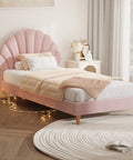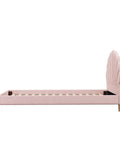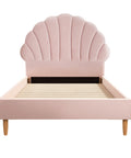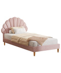 Single Bed Frame Scallop-Shape Bedhead Pink Velvet